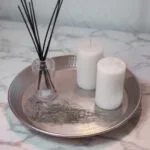Mesita de arrime, accesorio de apoyo….detalle divino. Base blanca con madera calada.